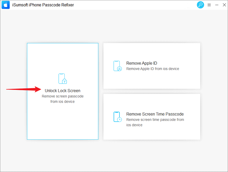 Step 2: Launch iSumsoft iPhone Passcode Refixer on your computer, then click to select the tile on the left that says “Unlock Lock Screen”.