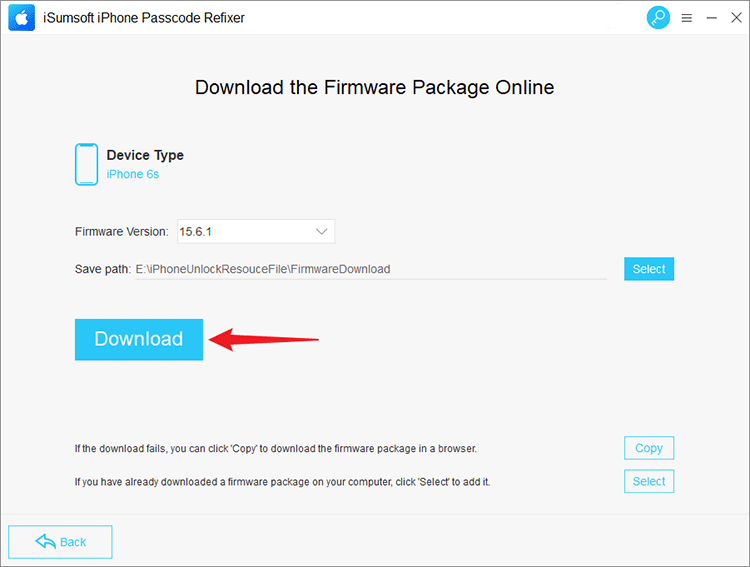 Step 5: When the software page displays your device information, you’ll be prompted to download the firmware package needed to unlock the iPhone. So, click Download, and the software will begin downloading the firmware package to the computer. You need to wait a few minutes for the download to finish.