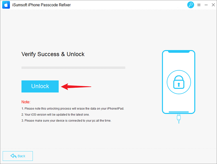 Step 6: Once the firmware is ready, you’ll see the Unlock button on the software page. Click the Unlock button and the software will start unlocking your iPhone.