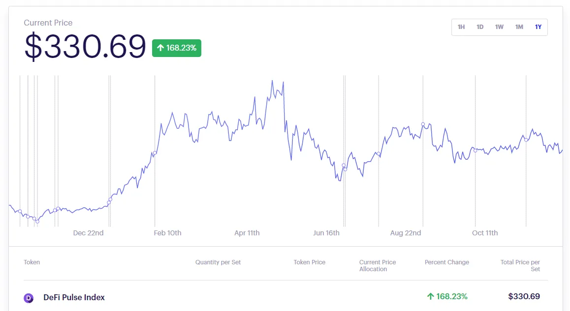 DeFi governance tokens have also grown in popularity. Over the previous year, the DeFi Pulse Index, which measures a weighted average of 18 tokens, has climbed by 168.2 percent.