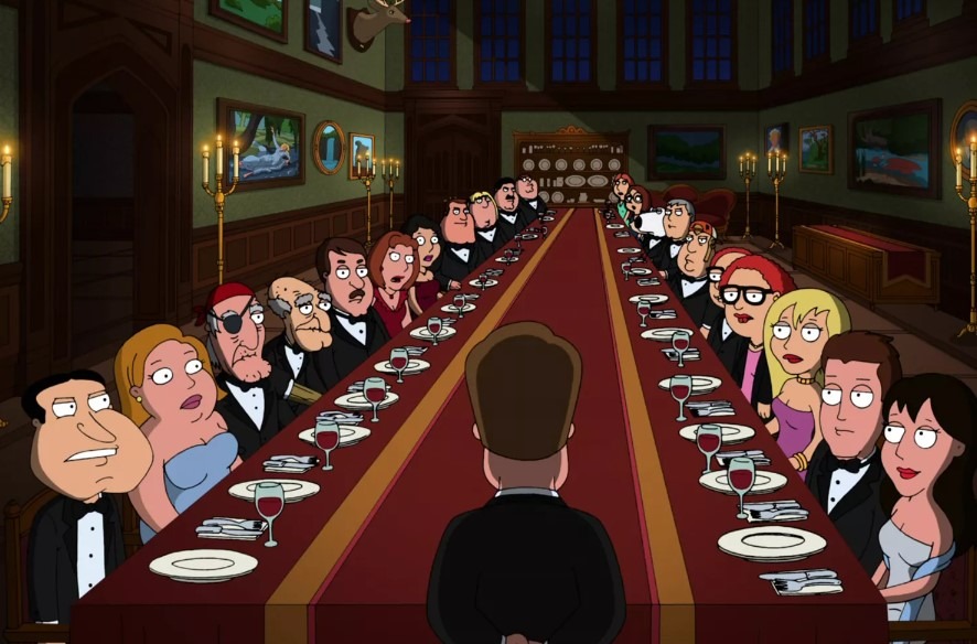 The ninth season kicked off with what’s considered one of the show’s best episodes. What’s great about “Family Guy” is that the scenes don’t just happen in Quahog, but in other dimensions and even at a dinner party in the cliffside mansion of renowned actor James Woods.