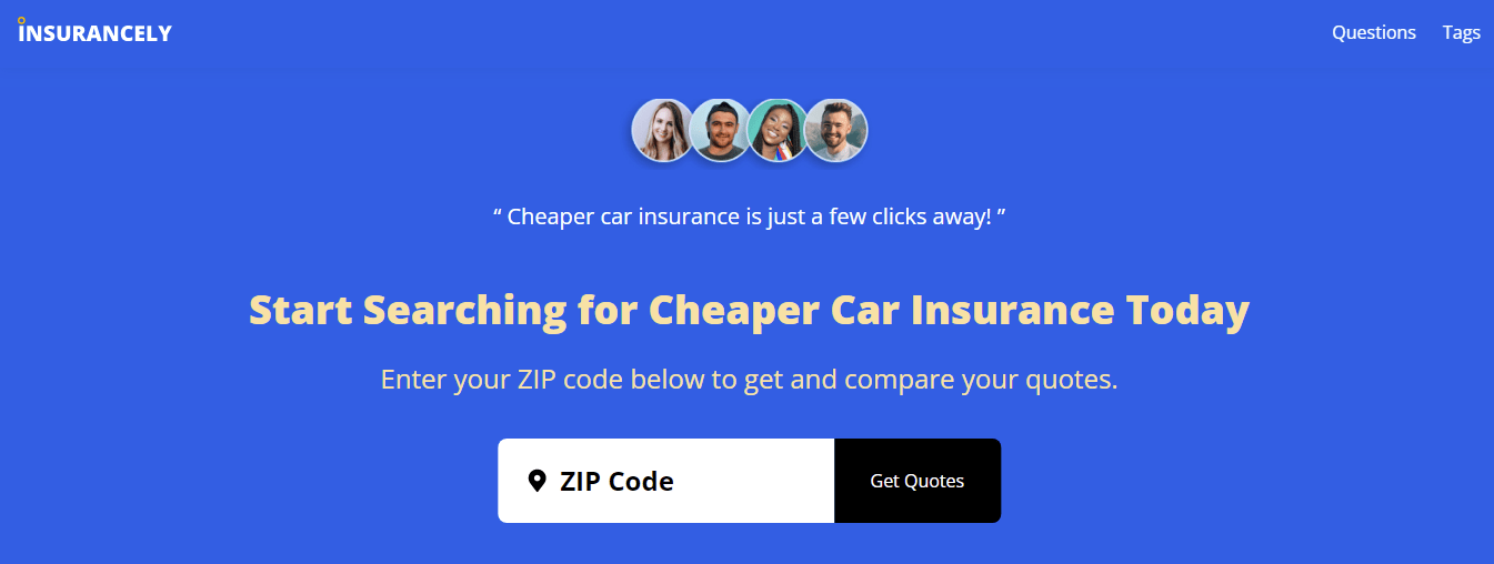 First of all, you need to navigate to the official website of Insurancely here at the main interface, enter the zip code in the provided search bar, and hit the get quotes button.